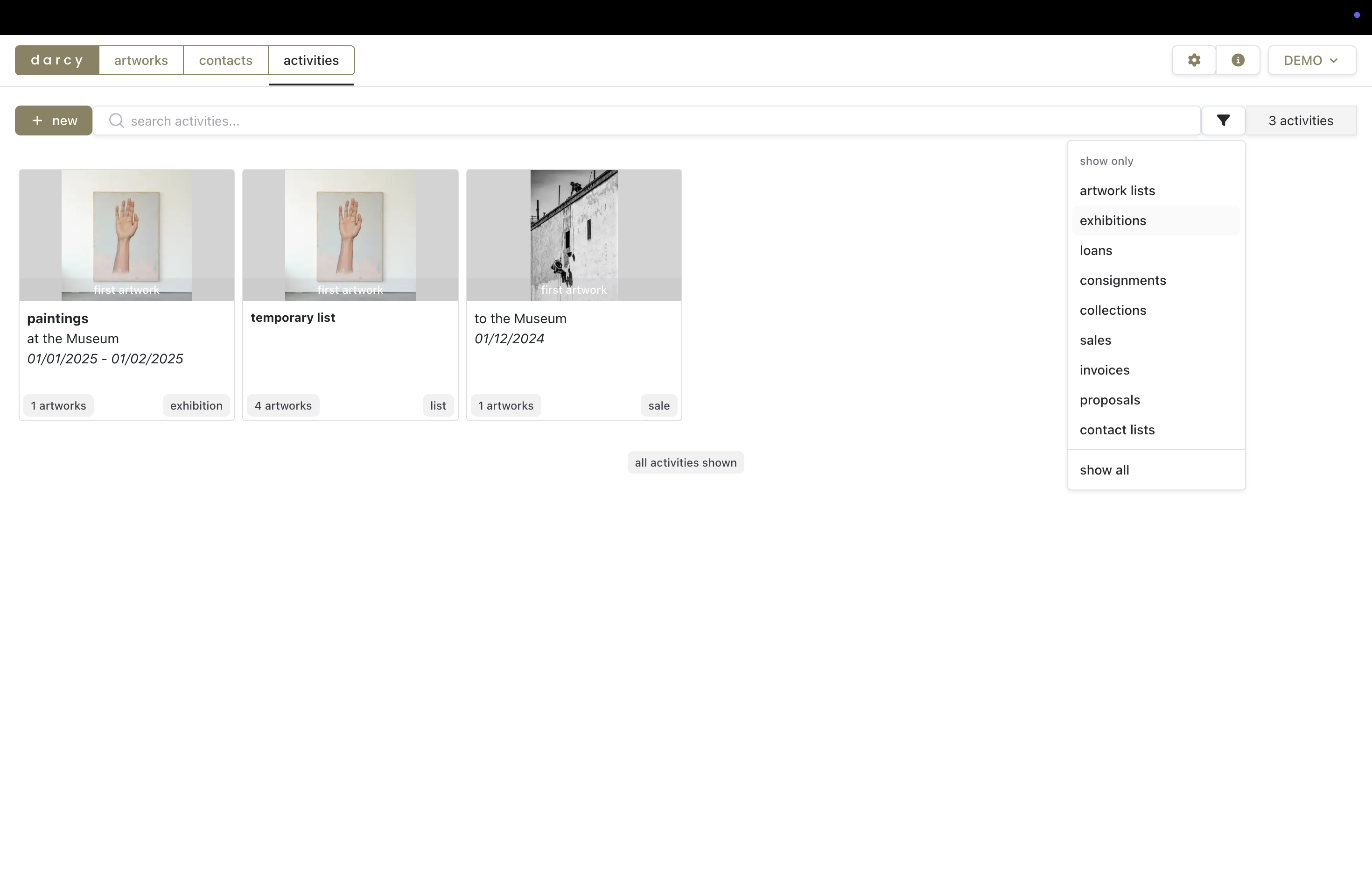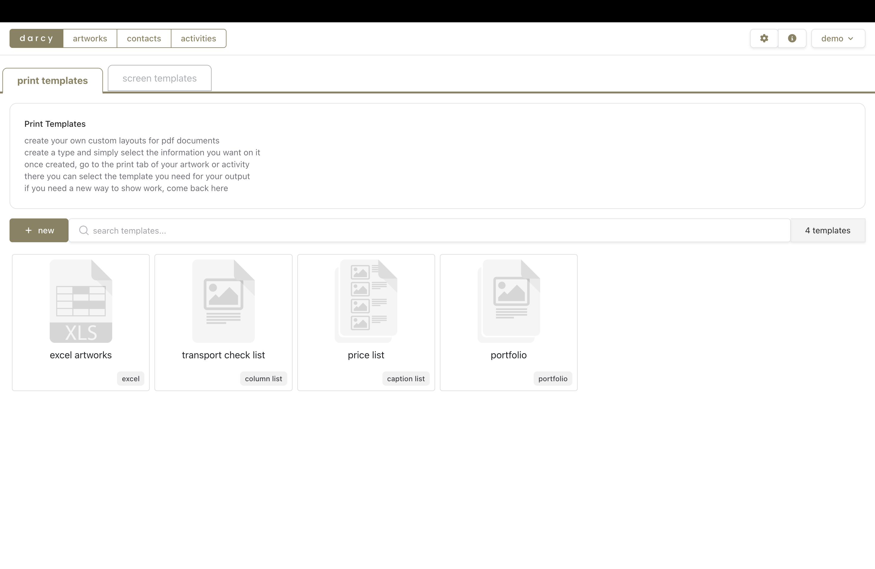 d a r c y is perfectly suited to assist in your whole artistic practice. And who knows, sometimes these can help you make a sale or help you provide those interested with that necessary information.