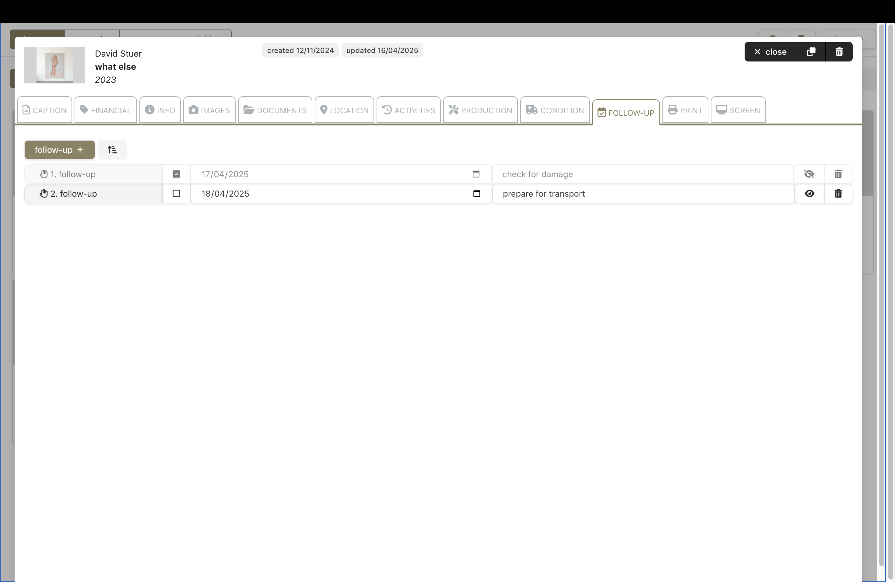 The art world doesn't always completely align with the art business. Sales can be important. They keep the lights on. But what about artistic value, histories, production details, exhibitions, damage reports, and much more? All these intricate details are often just as important to document.